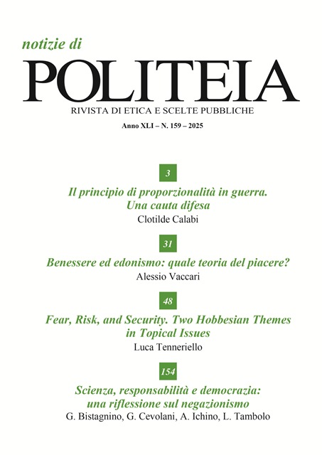 Notizie di Politeia (ISSN 1128-2401) is a peer-reviewed quarterly journal which hosts unpublished contributions, in Italian or in English, on a broad range of topics related to ethics and political philosophy and tackled from an interdisciplinary perspective. The approach of the journal is in the vein of analytical philosophy, broadly conceived as that intellectual frame inclined to rigour and exactness. In the last three decades, Notizie di Politeia has been promoting an intense exchange of relations among different branches of social sciences, including political science, law, economics, and practical ethics. Notizie di Politeia is the journal of the Research Centre “Politeia”, an independent, non-profit organisation established in 1983 in Italy to foster and provide theoretical analysis and practical training in politics and ethics, with a particular focus on applied ethics (business ethics, bioethics, IT ethics, etc.). Started in 1985 as a newsletter, hence its name, Notizie di Politeia rapidly evolved into an academic journal, publishing a wide range of papers examining both the conceptual and the empirical aspects of the various topics treated. Among its many contributors, Politeia has hosted distinguished scholars such as Norman Bowie, Daniel Callahan, Richard De George, Ronald Dworkin, Tristram Engelhardt, Vincenzo Ferrari, Francesco Forte, Edward Freeman, Sheila Jasonoff, Deborah Johnson, John Harris, Eugenio Lecaldano, Jan-Werner Mueller, Thomas Nagel, Lynn Paine, Giuliano Pontara, Stefano Rodotà, Frederick Rosen, Amartya Sen, Uberto Scarpelli, Fred Schauer, Peter Singer, John Skorupski, Hillel Steiner, Carlo Augusto Viano, David Vogel, Sandra Waddock, Patricia Werhane, and Simon Zadek.